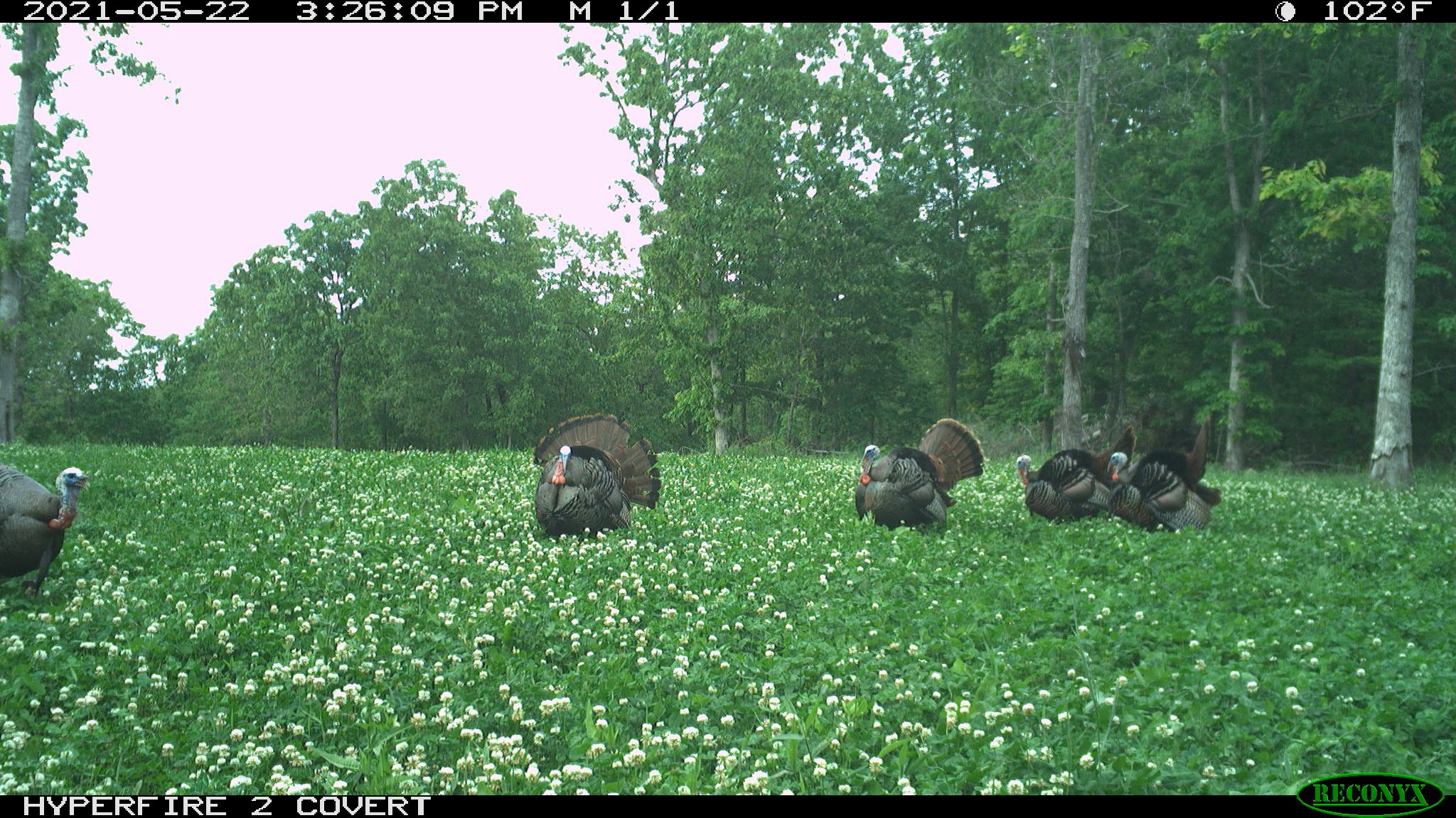 Compilation of trail camera pictures of Whitetails and Turkeys in food plots on my own hunting property.